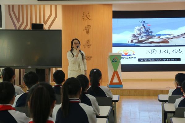 11月12日,哈尔滨工程大学工学书院启航之烽科普队“Nautilus Beacon”于哈尔滨市铁岭小学校(鲁商校区)开展军舰知识主题科普宣讲活动。本次活动由学生副书记陈星硕统筹策划,科普队队长赵熙盟带队,科普队部分成员参与。
