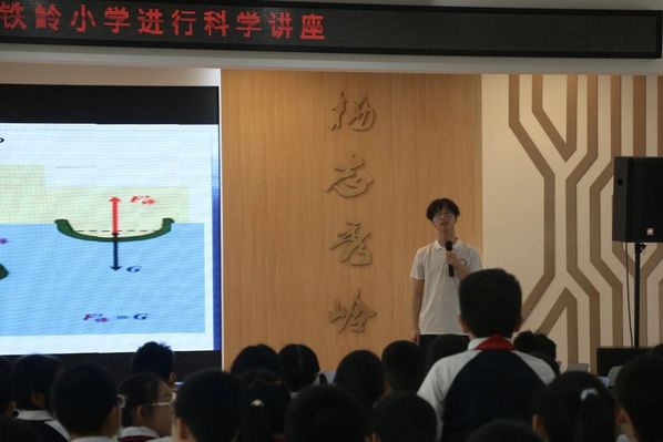 活动伊始,铁岭小学副校长对科普队的到来表示欢迎,鼓励学生积极参与、认真听讲。陈星硕向学生介绍科普队以及宣讲主题,引导学生关注国防科技与海洋知识。