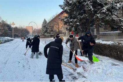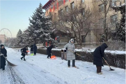 寒风中,志愿者们手持清雪工具,分工划定责任区域,相互配合,有条不紊地清理校园道路上的积雪。大家干劲十足、高效协作。经过一番努力,校园主要通行路段的积雪被清理干净,路面恢复整洁通畅,为师生出行筑牢安全防线。