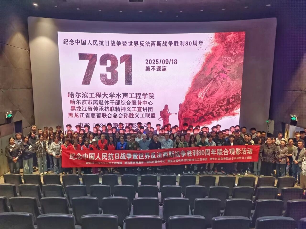 为纪念中国人民抗日战争暨世界反法西斯战争胜利80周年,9月18日,水声工程学院开展师生联合观影活动。哈尔滨市退休干部代表、哈尔滨市离退休干部综合服务中心工作人员、黑龙江省传承抗联精神义工宣讲团、黑龙江省慈善联合总会孙胜义工联盟以及学院师生代表参与活动,活动由学院党委副书记贾刚主持。