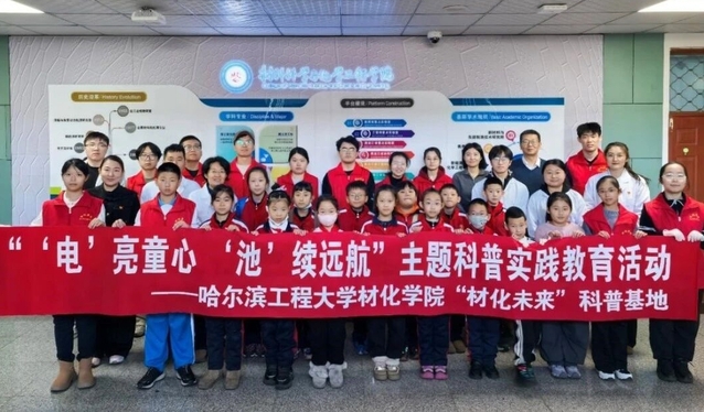 12 月 20 日,哈尔滨工程大学材料科学与化学工程学院党委主办、多个教工及学生党支部联合开展的 “‘电’亮童心,‘池’续远航”主题锂离子电池科普探索活动在 “材化未来” 科普基地举行,哈尔滨市苏宁红军小学等中小学校的学生参与活动,材化学院副院长李峻青、新能源材料与化学工程研究所教工党支部书记殷金玲,以及学院师生志愿者提供引导支持。