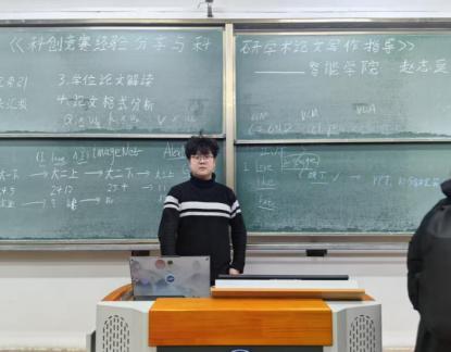 与此同时,智能学院院科协持续打造 “双创课程”系列。本学期的《科创竞赛经验分享与科研论文写作指导》由星驰智航实验室赵志遥、曹丰铄两位同学负责授课,特邀黑龙江省青年讲师团成员吴鹏副教授,以及409所研究生李源、林其狄、刘晴、吴鹤等师兄师姐组成特邀嘉宾团,带来一线科创经验分享,吸引了236名学生踊跃参与,以“理论+实践+朋辈引领”的多元模式,为学子们搭建了通往科创之路的桥梁。