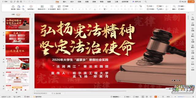 1月22日至2月28日,哈尔滨工程大学信息与通信工程学院“法润两江”普法实践团在四川省达州市、黑龙江省哈尔滨市开展以基层普法宣传为主题的实践活动,实践团成员邓棠月、孟飞扬分别在两地开展线下岗位实践与线上宣传调研工作,围绕“职海砺剑”专项行动,以跨地域协作模式完成基层普法相关实践内容。