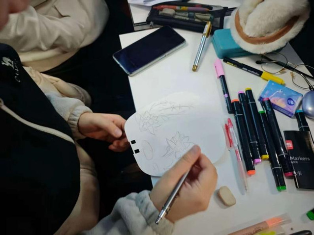 空白纸扇涂鸦为同学们提供了释放内心感受的创意出口,集体喊出解压口号的环节强化了情绪疏导的仪式感,专属涂鸦扇不仅成为可留存的解压信物,部分作品的展示解读还实现了情绪的群体共融与理解,丰富了心理支持的形式。