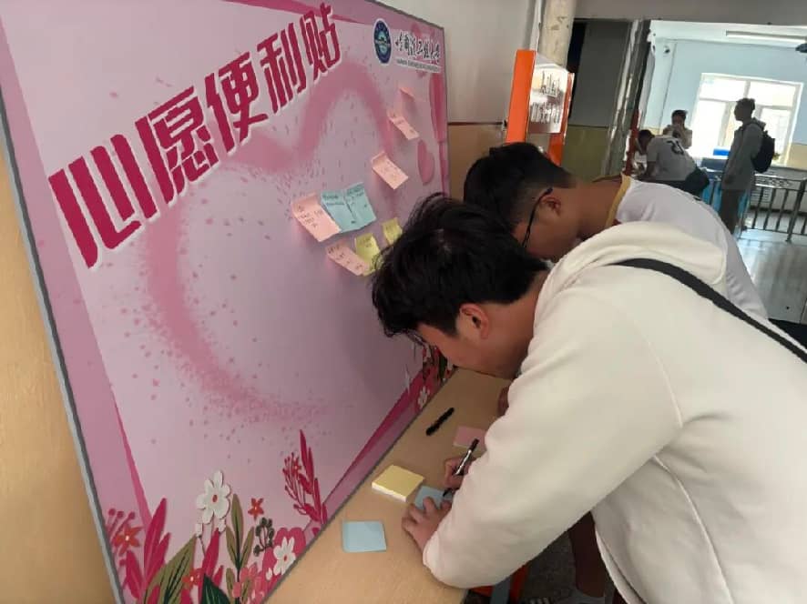 此外,“心愿便利贴”活动也备受同学们喜爱。大家拿起笔,在便利贴上写下近期学习目标、生活期许与自我鼓励的话语,张贴在专属心愿墙上,以可视化的方式明确个人发展方向,将内心的期待转化为成长动力,在正向暗示中激发积极向上的生活态度,以饱满的精神状态迎接后续学习生活。