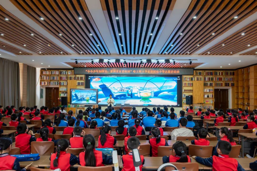 志愿者们以哈工程 “三海一核” 国防精神为引,结合赵一曼烈士英雄事迹,将国家安全理念融入生动讲述,让 “国家安全是民族复兴根基” 的道理扎根少年心田。现场,少先队员庄严宣誓,以铿锵誓言立下 “捍卫祖国荣光” 的志向,实现红色基因与国家安全教育的深度交融