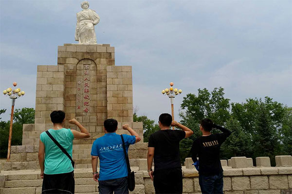 碾子山位于齐齐哈尔西北部,拥有光荣的革命斗争历史。到达碾子山区后,志愿者们拜谒东北人民解放纪念碑。郭涛向志愿者们详细讲述碾子山人民奋起抗日的光荣历史。碾子山的历史遗迹铭所刻的革命意志与光荣传统,让队员们深刻体会到先烈们的不屈精神与自由意志。最后,志愿者们在郭涛带领下重温入党誓词。