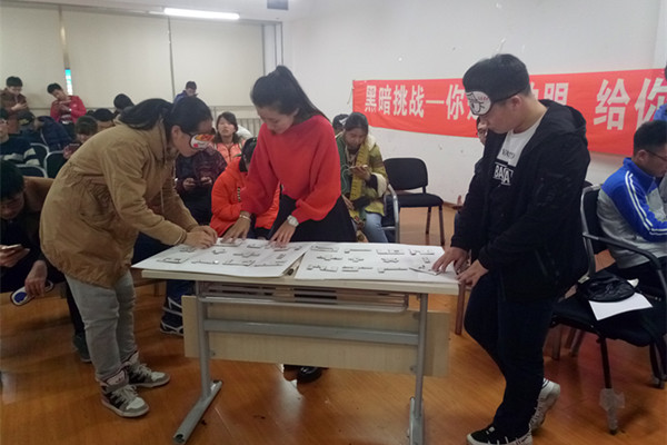 11月5日14时,材化学院团委宣传部于启航活动中心举办“黑暗挑战”大型盲人体验活动。全校共有60余人参与本次活动。