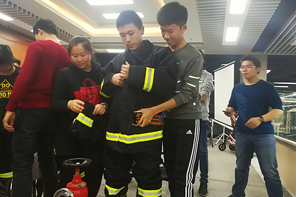 为让大家对游戏有更好的体验,赵欣悦对同学们讲解火灾案例,火灾逃生方法以及防火常识。其中很多一直被忽略的问题被重新提起,既让同学们了解了知识,又消除寝室火灾隐患。在志愿者演示后,同学们穿起消防服,铺好消防栓。在活动中同学们都更好地了解和体会消防员的辛劳。