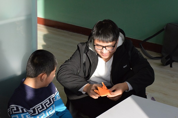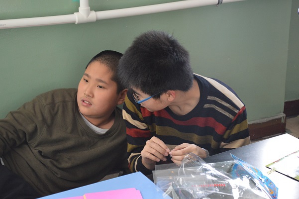 来到燎原小学,老师带领同学们和志愿者来到手工课教室,进行手工课的活动。同学们选择自己喜欢的手工作品,志愿者协助他们完成自己的作品。有的志愿者教孩子们唱歌和画画,有的志愿者给孩子们讲故事,孩子们和志愿者相处的很愉快。