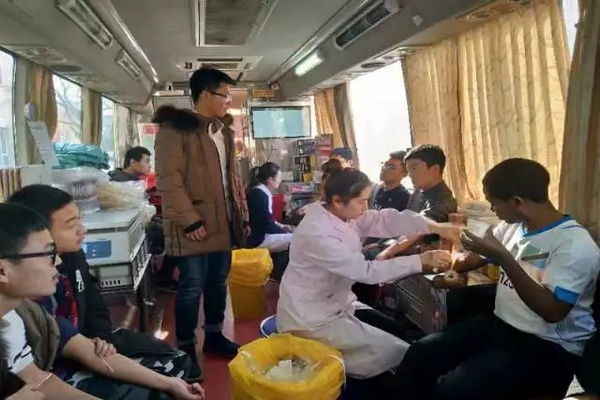 同学们登上献血车进行无偿献血。志愿者们协助配合医生进行献血工作,为准备献血的同学们送水,并引导已献血的同学到指定地点休息,给他们颁发献血证。整个献血活动现场秩序井然。