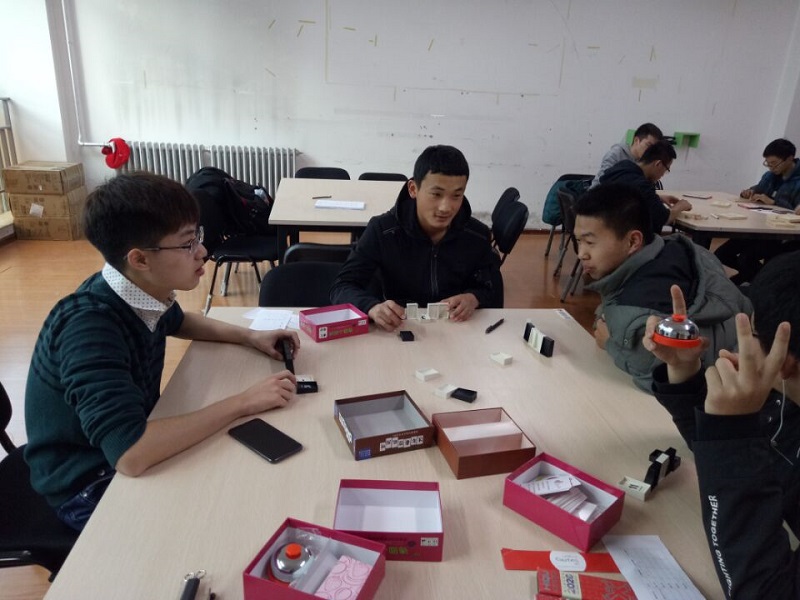 本次数学趣味竞赛,将游戏与数学知识紧密结合。主要活动内容有游戏,通关,九连环,汉诺塔,步步为营,数独,达芬奇密码,犯罪现场,华容道,伤脑筋十二块,在场同学都投入其中。每位参与的同学都得到了奖品,最后有两名实力与运气并存的同学得到了大奖。