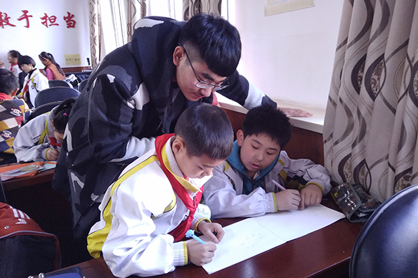 时鸿博向同学们讲解什么是可再生能源和可再生能源与不可再生能源的区别,和同学们一起了解可再生能源的种类,并且讲述如何利用可再生能源。希望通过细致入微的讲解让同学们充分了解可再生能源和可再生能源技术在生活中的重要性。志愿者们引导同学们认真完成作业,并对同学们有疑问的地方进行详细讲解。