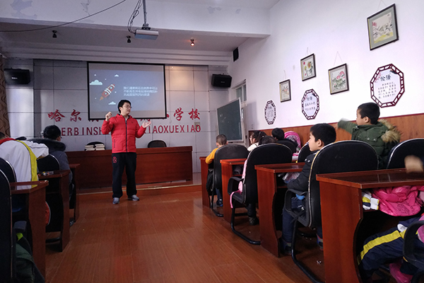 12月5日8时,金手指志愿服务队到学府小学开展志愿支教活动。金手指志愿服务队队员和材化学院科创协会部分成员参加此次活动。材化学院科创协会时鸿博担任本次活动的主讲人。