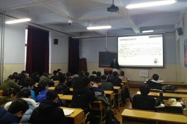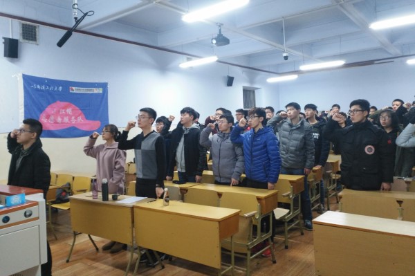 团委组织部部长王克广首先带领全体同学认真学习了十九大会议精神,鼓励同学将青春奉献给祖国和社会,积极投身公益活动。以彭钰皓为代表的学生干部进行演讲,鼓励同学们帮助身边的人,成为学院和学校志愿工作的“代言人”。会议最后,全体参会人员起立,庄严宣誓,立志成为一名合格的中国志愿者。