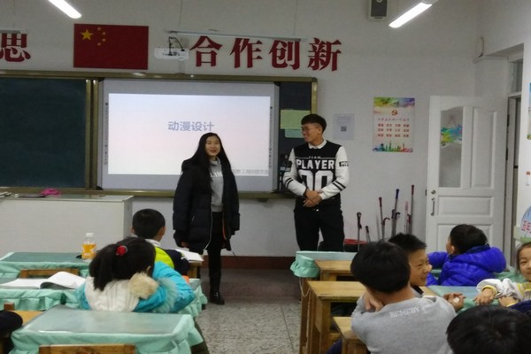 下午3时,全体成员在21B教学楼大厅集合,一起出发前往苏宁小学,两个班级来到四年四班和五年三班,分别以人生规划和设计自己的动漫人物为主题进行活动。电子五班的同学介绍未来的求学之路,给予他们鼓励以及对大学的憧憬,电子八班以自己设计动漫人物为题,介绍一些简单的绘画技巧,帮助他们找到兴趣,培养他们的创造力。