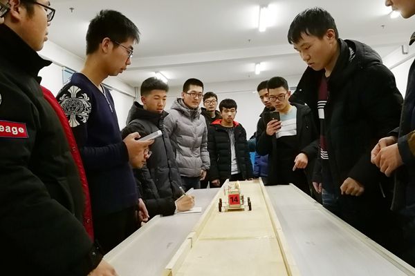 本次竞赛共有12支队伍晋级决赛,其中2支队伍为创新组。各个小组按照指定编号就位,各位评委对参赛作品进行点评并作出指导,其余各组成员在旁边对自己小车做调试。竞速组比赛形式为在规定轨道内跑完全程按照时间对各组进行排序,创新组则由评委根据作品创新性以及实用性进行评估。本次比赛共评出一等奖2名、二等奖5名、三等奖5名。