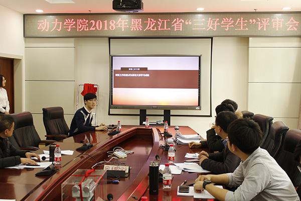 3月14日8时30分,动力学院开展2018黑龙江省“三好学生”与优秀毕业生评审会。动力学院党委副书记贾九斌,班主任代表张海,教师代表马旋,学工办全体辅导员及学生代表参加本次活动。