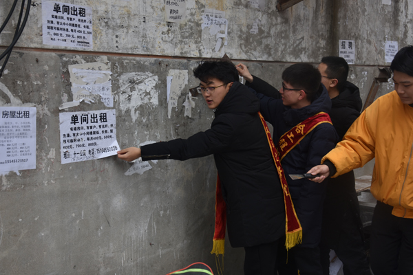 在冀旭浩与17级各支部团支书的组织下,服务队同学们以三到五人为单位,对学校“腐败街”范围内小广告进行清理,并进行相关废品杂物收集与清扫工作。活动期间,同学们积极完成分配的各项工作,并积极帮助其他同学,活动氛围团结和睦,目标区域基本清理完毕。