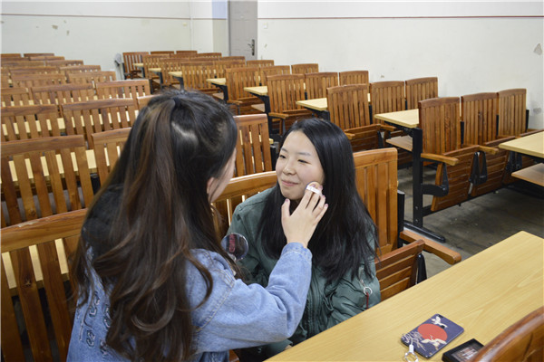 礼仪部于丹妮对女生开展化妆培训,她就化妆的基本知识、原理、步骤、作用做简单介绍,逐个介绍五官各部分的化妆技巧以及它们对面部气质的影响,讲述不同职业女性应该采取的不同化妆方法并举出数个效果显著的化妆案例。她“身体力行”现场进行化妆演示,以便清楚的讲述化妆过程。