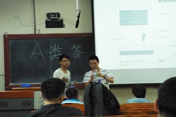 参赛作品分为A、B、C三类,A类为图纸或模型,B、C类以论文形式向评委和现场观众介绍个人作品。参赛人员按照次序分别上台进行答辩和参赛作品的展示。参赛作品包括除臭垃圾桶,等离子流体武器等。展示完毕,评委对参赛选手的作品的原理和创新点等方面进行提问,参赛同学对评委的各类问题给出合理回答,评委还对参赛人员的作品给出适当的建议。