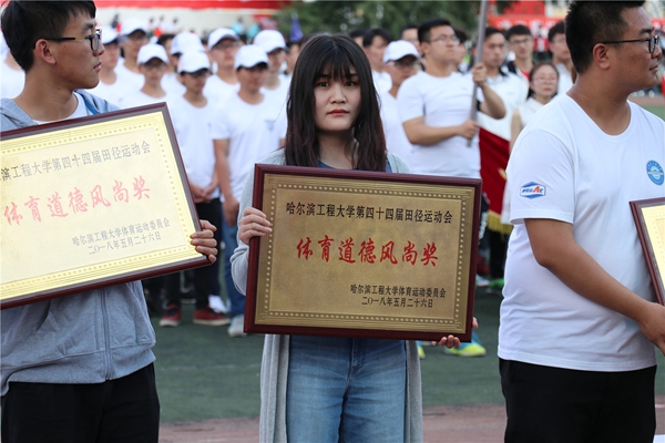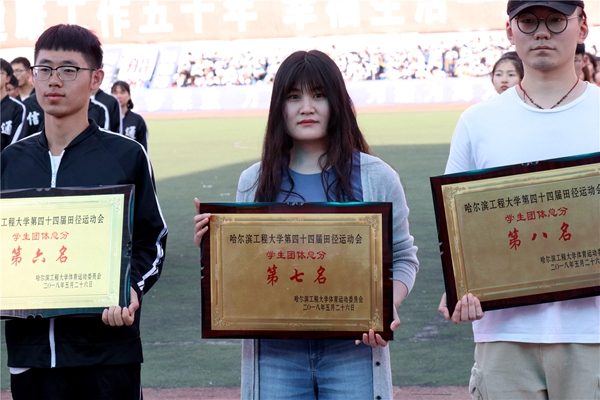 本次运动会竞赛项目分为竞技项目类和大众体育类。经过一天的角逐运动会进入尾声,举行闭幕仪式,公布各院系得分获奖情况。机电工程学院最终斩获学生团体总分第七名与体育道德风尚奖。竞技项目类比赛中,机电学院共有七人获奖。院党委副书记牟道富获得男子跳高第一名。大众体育类中,学院斩获男女跳长绳比赛团体第二名以及男女圆圈接力第七名。院系代表上台领奖;全体工作人员合影留念。