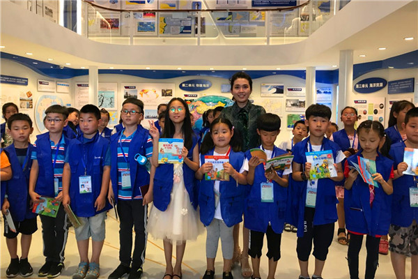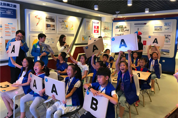 在启航338活动室,讲解员向孩子们讲述蛟龙号和其潜航员背后的故事,让他们体会国家富强与民族复兴的奋斗之路。志愿者带领孩子们来到船舶博物馆参观船舶模型,培养同学们的爱国意识,帮助他们了解人类的航海历史。在海洋文化馆,孩子们进行海洋物质和海洋生物的学习,并利用VR设备体验“登上航母”。志愿者为同学们举办海洋知识竞赛来巩固本次学习的成果,李蕊根据成绩给孩子们颁发奖品。
