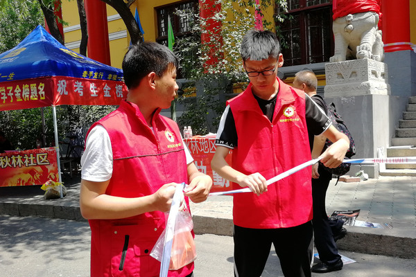 活动过程中,志愿者们协助公安部门人员维护考场外秩序,为考生们开通安全通道,并协助120急救人员,对现场的突发事件进行第一时间的有效处理。考试期间,志愿者们向考生家长宣传红十字现场应急救护知识,并为考生家长进行心理疏导。“小火柴”志愿者服务队已连续六年开展“红十字志愿服务为高考学子保驾护航”活动,为考生及家长们提供有效的服务。