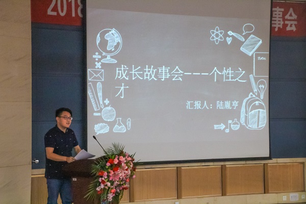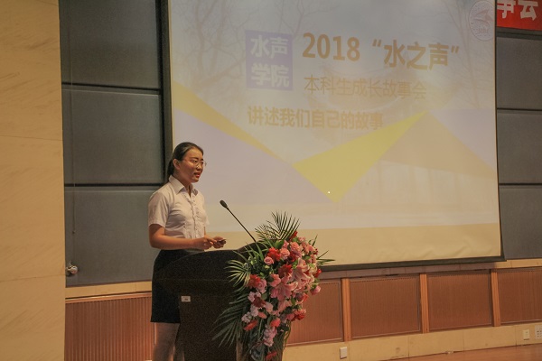 主持人王艺迪介绍四位分享自己成长故事的优秀毕业生:王也、陆胤亨、任佳威、傅笑盈。四位毕业生分别根据课外活动、校内学习生活以及海外的学习生活见闻向在座同学提出学习生活上的建议。同时介绍科创活动的过程,对同学们提出了切实建议,最后他们分享自己参与学生工作积累的经验,表述自己对课业学习以及课余工作平衡的看法,并号召大家争做“水声代言人”。在活动的最后,王艺迪上台致辞,表达对毕业学长学姐的祝愿,以及对在座同学的期望和鼓励。