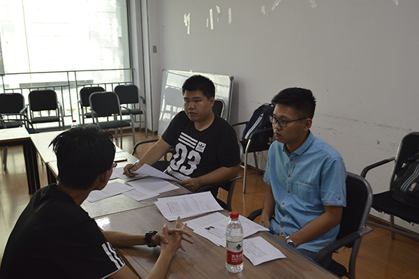 面试开始前,进行面试的同学将准备的报名表递交给评委,随后进行时长约三分钟的个人陈述。陈述内容包括对个人的学习状况、工作经历以及工作能力等方面。之后各位评委对竞聘者进行有针对性的提问,以便更全面地了解竞聘者的工作能力。面试最后,评委对竞聘者的各项能力进行评分,择优录取副部长。