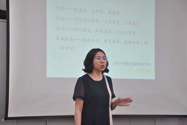 吴岚向同学们提出学生干部培训的意义,并对学生干部们今后的工作做出要求。她指出学生干部队伍建设存在的一些问题,并针对这些问题指明学生干部队伍建设的正确方向。她向大家介绍学生干部队伍建设的内容,加深同学们对于自身培养及队伍建设的理解。吴岚向理学院全体学生干部强调工作意识的重要性,并勉励大家在任职期间尽己所能胜任本职工作。