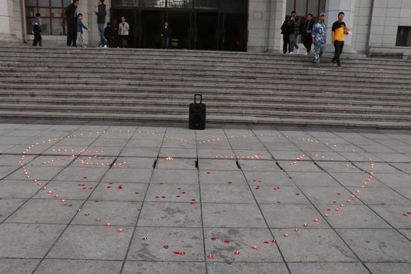 丁明轩在活动现场发表“九一八,勿忘国耻”演讲,以此呼吁同学们铭记历史、奋发图强,发扬军工精神为国家贡献自己的力量。我院团委、学生会成员在奥列霍夫广场点燃九一八造型蜡烛,开展烛光祈福活动以此缅怀先烈、传达哀思。
