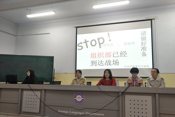 2018年9月25日18时30分,外语系团委、学生会、英才基地于41号楼422教室召开招新宣讲会,本次会议由团委常务副书记周冰楠主持,外语系2018级全体新生参加。