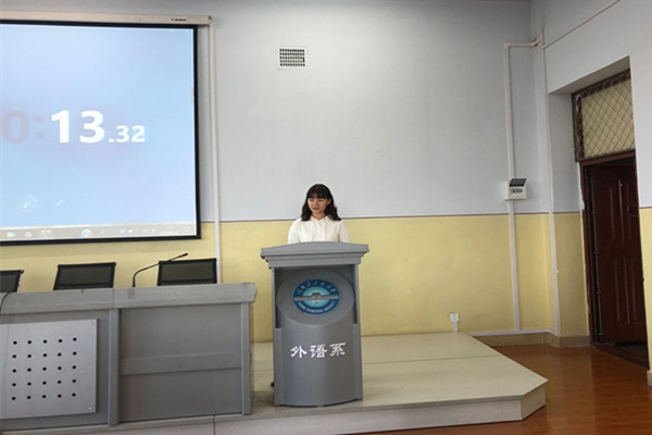 9月28日18点30分,2018年“外研社杯”全国英语演讲大赛校内选拔赛于41号楼422教室举行。杨秀娟、朱戈勋、白晶、逄月4位外语系教师及外教Rachel Wicker担任比赛评委,20位同学参加比赛。