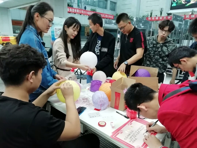 活动现场悬挂着花灯和灯谜,播放着音乐。飞花令环节中,同学们踊跃竞猜,表现出对中华诗词极大的热情。谜语内容丰富多样,从猜字谜到猜俗语,从猜地名到猜日常用语,涉及知识面广、趣味性强。同学们积极参与其中,仔细阅读谜语,共同探讨,合力作答,整个现场笼罩在中秋佳节的氛围之中。