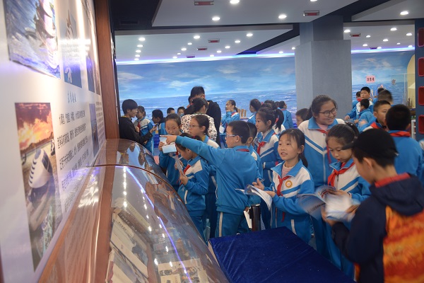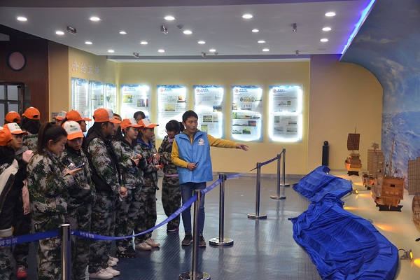 志愿者们带领学生来到启航活动中心十大名船展厅和船舶博物馆,并向同学们讲述船舶发展的历史,针对一些船舶和核潜艇的模型作出相关介绍。在活动过程中,同学们积极互动,并向讲解员提出问题,讲解团成员为他们一一解答,现场气氛活跃。