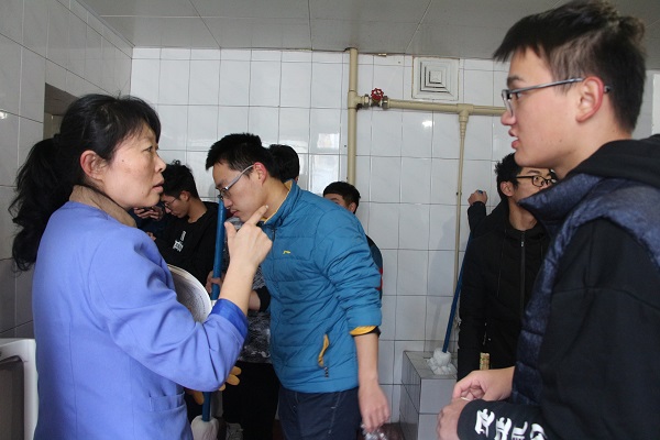 李时光向同学们介绍六公寓的历史,由来以及现状,分配劳动任务,六公寓保洁人员向各组同学讲解主要劳动内容,分配劳动工具。每组负责人带领本组人员到各个楼层进行劳动体验。本次活动的劳动内容主要包括清扫公寓走廊,擦拭楼梯扶手,清洁水房地面等活动。各班生活委员与保洁人员一同挑选出本次活动中表现优秀的同学并予以表扬。