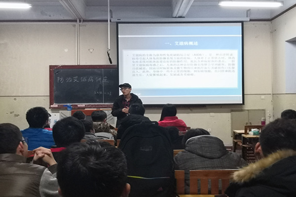 江佳正从艾滋病概述、消毒灭活、艾滋病如何传播、艾滋病临床表现、怎样确诊艾滋病、艾滋病治疗、预防艾滋病、关爱艾滋病者这八个方面进行讲解。江佳正强调大学生健康教育的重要性,讲述大学生预防艾滋的七个主要措施,鼓励同学们行动起来,向“零”艾滋迈进。