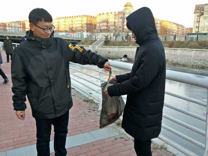 下午3时25分,志愿者们在陈硕勋带领下到达马家沟河岸。首先,陈硕勋对志愿者们进行明确分工,以确保清理活动有序进行。随后,志愿者开始沿河清理,将河堤周围的人行道和周围的草地里的烟头、塑料袋碎布等垃圾清扫到指定垃圾袋中。活动结束后,志愿者们将清理出的所有的垃圾都统一搬运到指定地点进行集中处理。