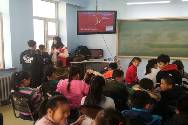 闫玉宁向孩子们介绍感恩的概念和感恩节的由来,讲解东方国家的感恩形式和中国传统的感恩文化,并引入与感恩相关的诗句。于威介绍为什么要感恩和怎么样去感恩,并依据正能量的实例讲解感恩的知识。谢盼主要和同学们展开互动,分享回馈社会、回馈父母的感受。