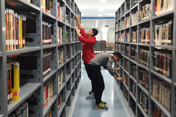 到达指定地点后,大家分组行动,每组负责整理一个书架,进行分拣图书,整理图书,清理废纸,擦拭书架等工作。随后,大家打扫了图书馆卫生,清理地面污渍。很快,同学们就完成了各项清理工作,阅览室恢复了原来的模样。