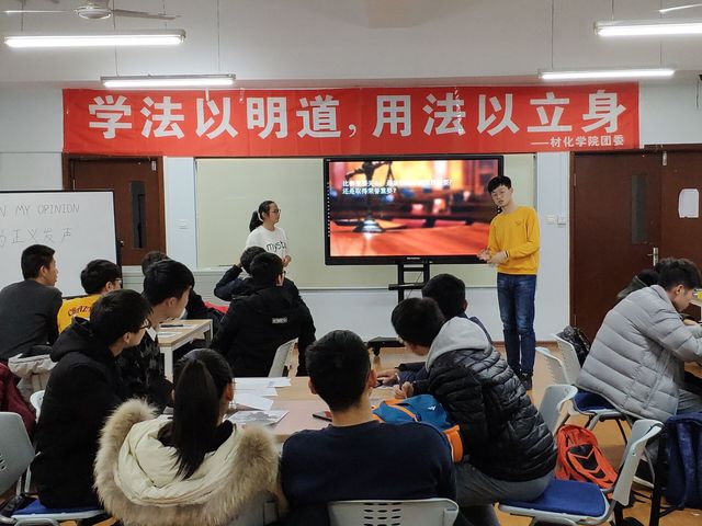 12月4日,材化学院团委实践部于启航338活动室举办了以“IN MY OPINION||为正义发声的”普法宣传活动,实践部秦宇婕担任本次宣传活动主持人,材化学院2018级部分同学参加本次活动。