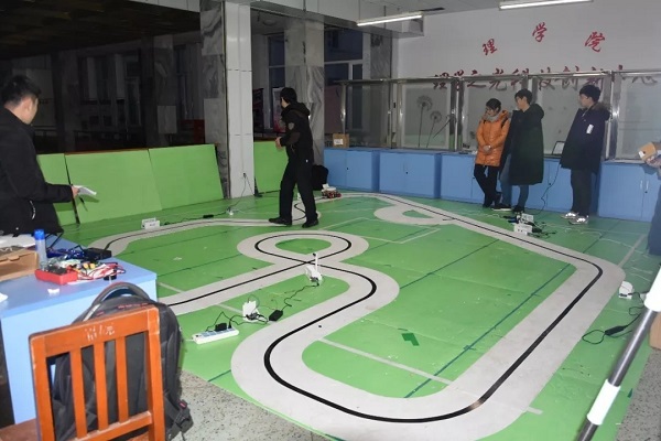 比赛课题分为两组,一是测量光纤的出射角,选手需在30分钟内完成仪器组装,数据记录以及程序编写等。二是小车的循迹和避障系统,选手们利用单片机和红外传感器等组装小车,限时十分钟,使小车按照规定路线行驶,并在信号灯处停止释放小球。参赛选手设计小车完成相应目标。