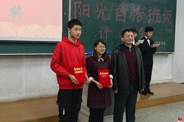 主持人对评选规则进行简要介绍。各班代表借助视频、PPT等方式进行演讲,展示班级风采。评委对各班级进行打分,刘久、陈斌对获得“优秀个人”和“优秀自管小组长”的学生颁奖,曹景杰对获得“阳光自治班级”称号的班级颁奖并进行活动总结,他表示各班成员应加强班级建设,共筑和谐优秀的班风。