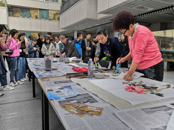三位老师为金手指志愿服务队题字“鳞片之殇,以爱护甲”“别让我们的孩子只能在博物馆中看见穿山甲”表示支持。金手指志愿服务队的各个队员向观众们讲解穿山甲濒临灭绝的现状及保护穿山甲的重要性,并希望大家一起加入到保护穿山甲队伍中。金手指志愿服务队成员还进行折纸小活动,成员们折出各种各样的小动物,并邀请路人一起折纸。志愿者们向外国友人宣传保护穿山甲,并邀请外国友人为穿山甲模型上色,与外国友人合影留念。
