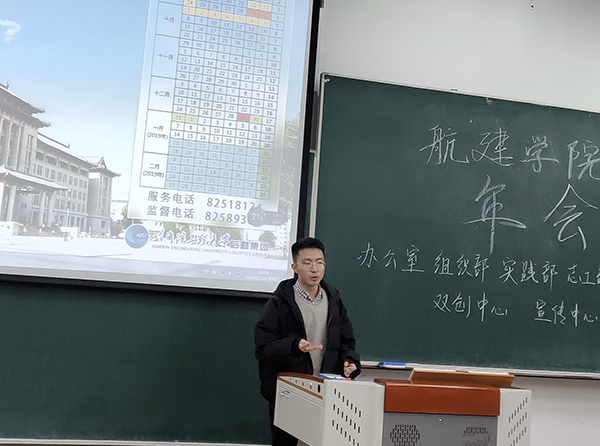 12月28日,航建学院团委于主楼N102教室举办2018年年会。本次会议由航建学院团委常务副书记范中行主持,团委全体学生干事参加本次大会。