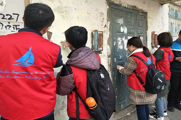 来到永平社区后,社区负责人为志愿者分发扫把、垃圾袋等清扫工具,划分清理区域。随后,志愿者们进入各自负责的楼道并进行楼道垃圾的清扫。清扫的过程中,志愿者们也对楼道中的物品进行整齐摆放。