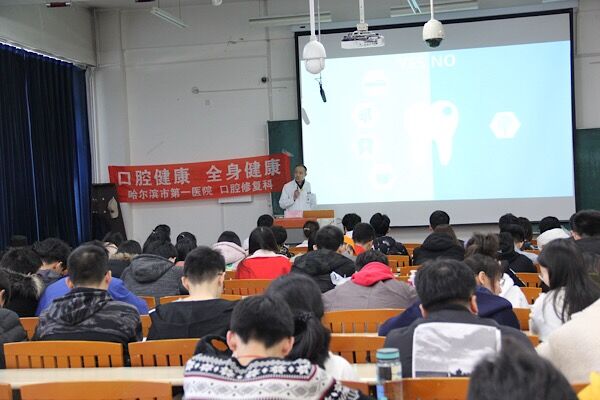 3月17日,由校青年志愿者协会主办,经济管理学院团委实践部与水声工程学院团委实践部联合承办的“世界口腔健康日”主题公益讲座在21B教学楼110教室举办。本次受邀嘉宾为哈尔滨市第一医院口腔科修复科主任兼主任医师朱丽萍、副主任医师郑楠、主治医师张鹏飞、资深口腔医师孔祥雯等。