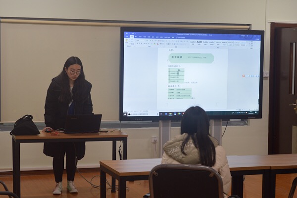 沈子涵为团支书及组织委员们说明本次会议的重要性,为大家讲解“品质团活”与“团聚爱心”活动的格式以及活动经费申请的步骤。她以历届学生的活动成果以及论文为例子为大家详细介绍如何制作演示文稿以及撰写论文时易犯的错误并为大家布置近期工作,为会议做出总结。