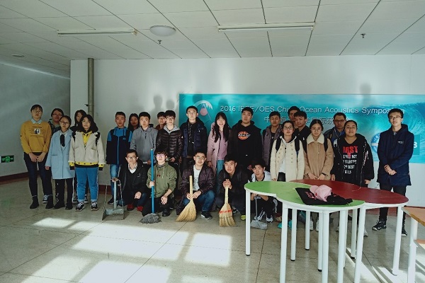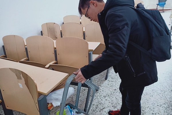 活动前团支书将同学们分为两组,第一组负责清理窗户和黑板,第二组负责清理地面和墙面。同时,同学们也对教室的课桌进行清理,除去桌面污渍和“课桌文化”。活动过程中同学们针对开关、暖气片等不易清理的地方进行仔细打扫,获得水声楼管理人员的肯定。